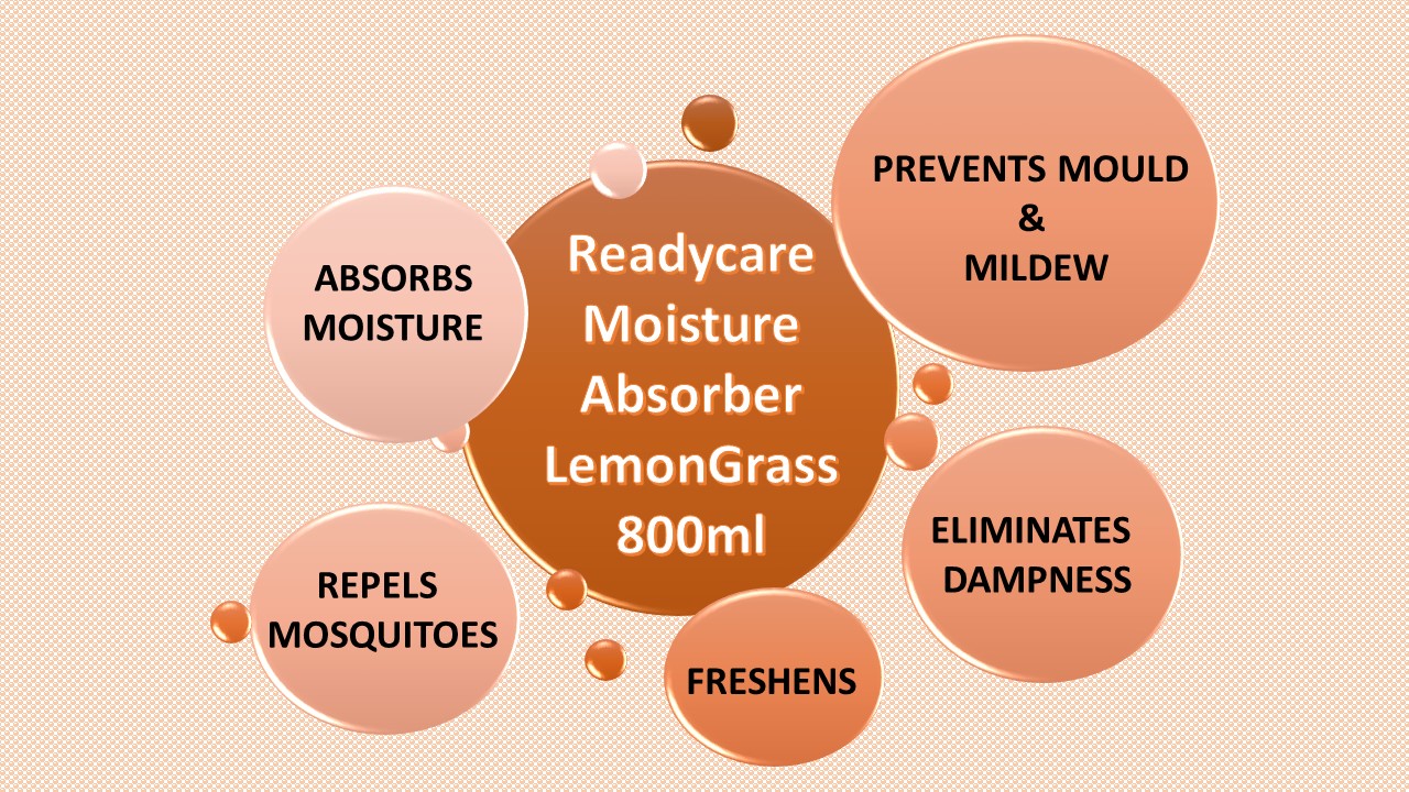 ReadyCare Lemongrass Dehumidifier effectively absorbs moisture in small spaces while repels mosquitoes.
